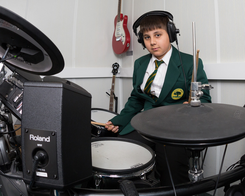 Oaks Park High School music department has first-rate facilities that allow students to have a full musical experience. The study of music has many recognized benefits in the cognitive and emotional development of children during their studies across all subjects