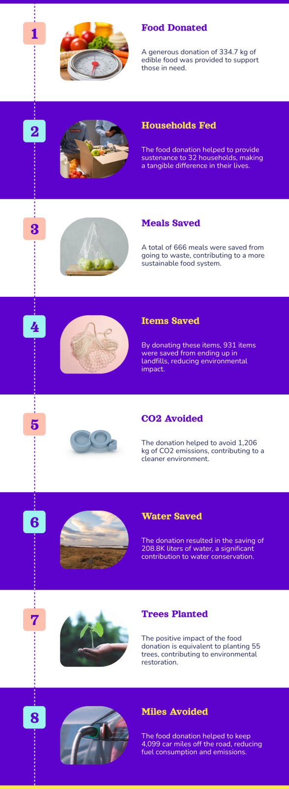 - 334.7 kg of edible food donated