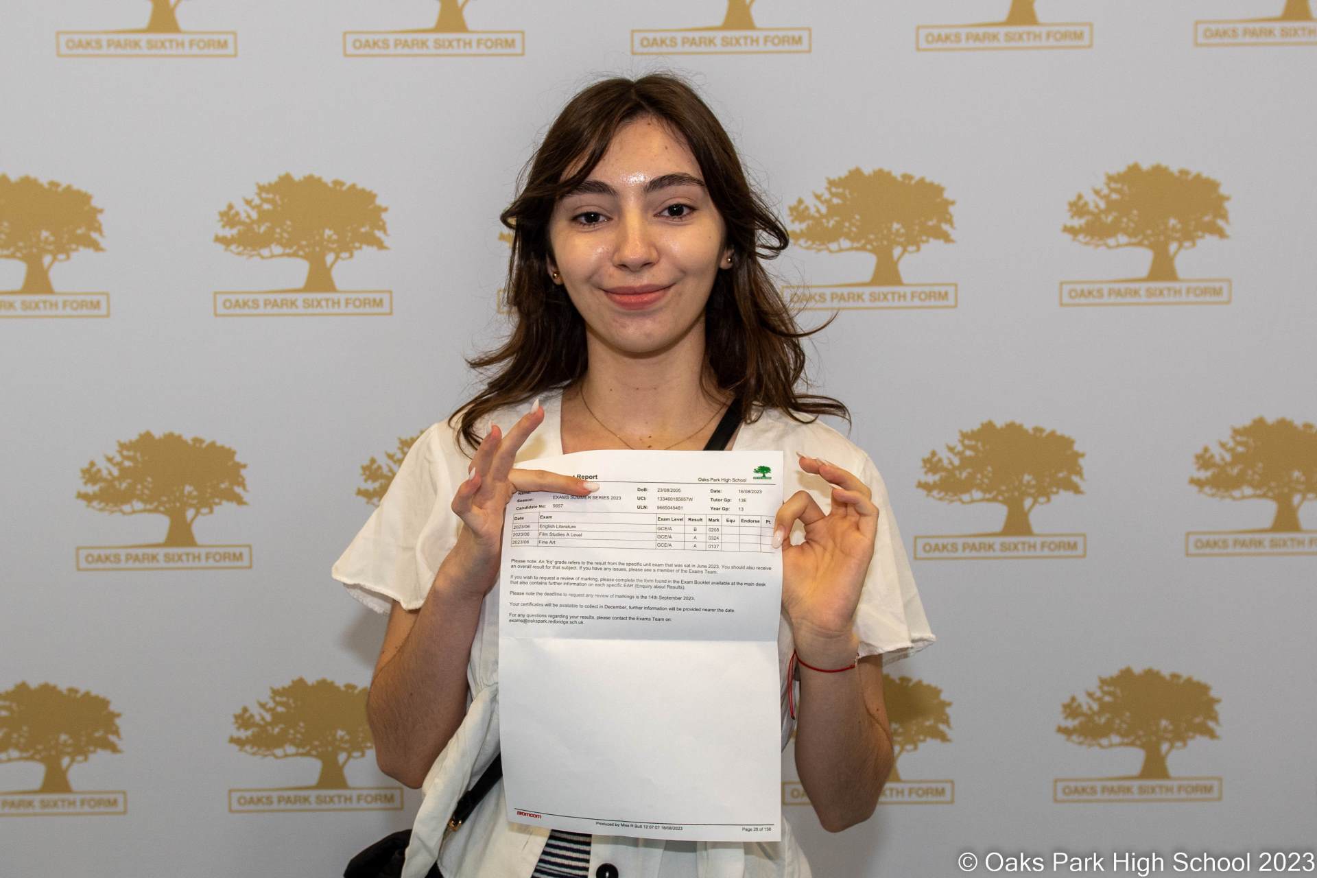 These achievements, and those of all the students, are a great source of pride to Headteacher Joanne Hamill, who said: “I extend my heartfelt congratulations to all our students on their remarkable accomplishments. These results not only symbolise the end of one chapter but also mark the beginning of new and exciting opportunities. I am very grateful to all the hard working staff at Oaks Park who have supported and inspired the students during the past two years maintaining the high expectations and standards that our school community prides itself upon’.